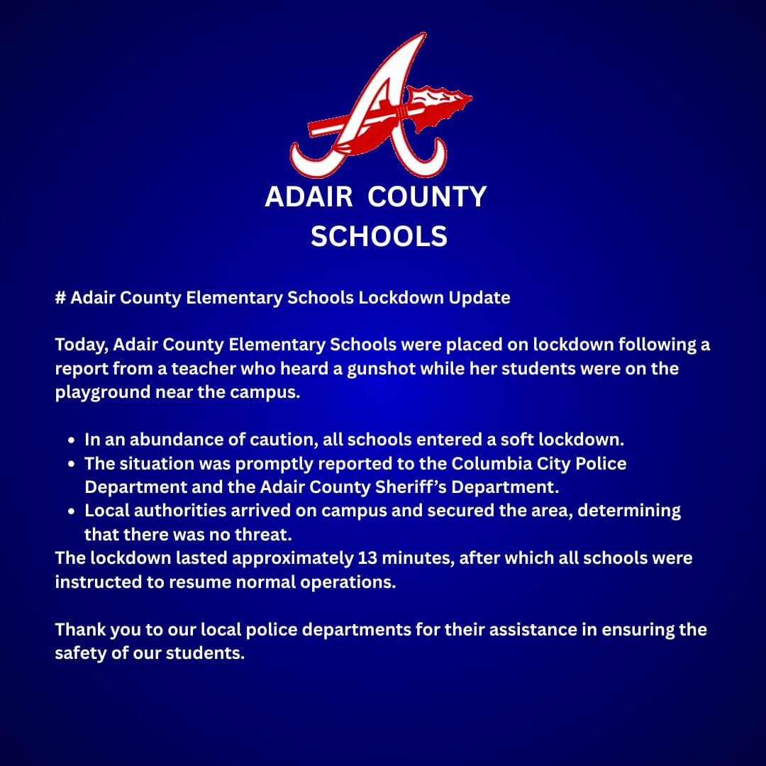 Adair County Schools: Lockdown Update Tuesday, October 21, 2025
