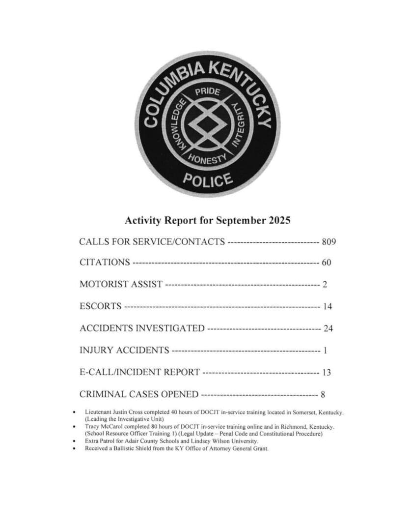 Columbia Police Release Activity Report for September 2025
