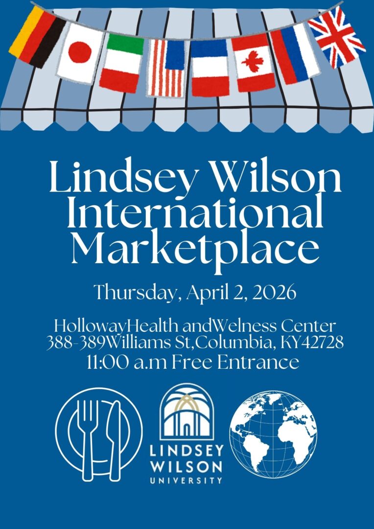 COLUMBIA, KY. (03/18/2026) The foods and cultures of Lindsey Wilson University’s international students will be on display on April 2 at the university’s annual International Marketplace.