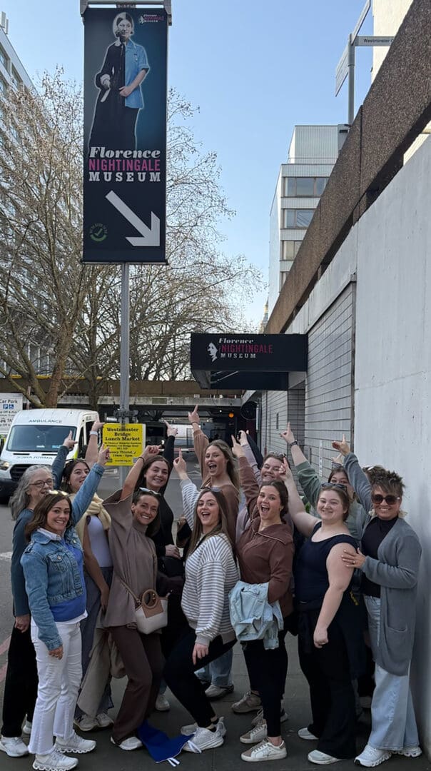 Students and faculty members of the Lindsey Wilson University nursing program gather outside the Florence Nightingale Museum in London on their study-abroad trip to London and Paris during the university’s spring break.