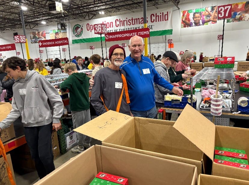 This group of volunteers recently traveled to the Samaritans purse Operation Christmas Child processing center in Atlanta, Georgia. The group has been busy this week processing OCC shoebox gifts. These boxes will be traveling to other countries, to bless children over the world over the next few weeks. Pictured from left are OCC Ky Director Clint Fields, Mark Fudge, Denise Fudge, Tricia Malpica, Eric Malpica, Justin Burris, Pam Burris, Gail Watkins, Linda Watkins, Evan LaBarge, Aaron LaBarge, Patsy Wilson, Kerry Radford, Terrie Radford, Jackie Phelps, and Kathy Phelps. The group is made up primarily of individuals from the Columbia Baptist Church, but also has volunteers from other churches in the area as well. The Atlanta processing center has already processed more than 1 million shoebox gifts and hopes to reach 2 million shoeboxes by the end of next week. Nationwide at the eight processing centers across the United States, Samaritans Purse hopes to process over 12 million shoebox gifts over the next few days. An amazing statistic about the shoebox gifts in 2024 is that 27% of the recipients of shoebox gifts, led to the gift of salvation for the children receiving their boxes. Not only do the children receive the wonderful gifts in each shoebox, but they also receive gospel materials written in their own language, which consists of a 12 week study of the gospel. Columbia Baptist Church has had a group travel to the Atlanta processing center almost every year since 2016.