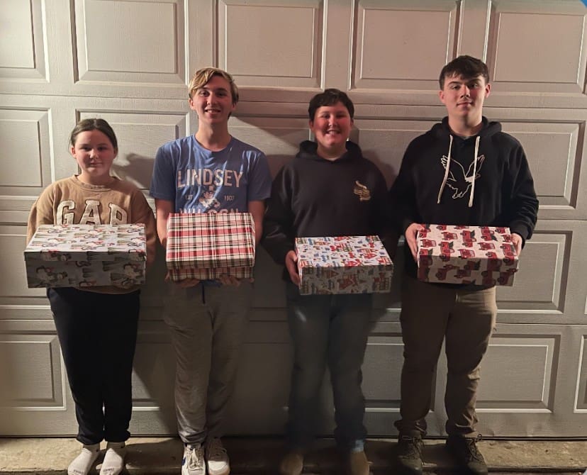 The Murphy family has been packing shoebox gifts as long as the children can remember. Pictured are Elizabeth Murphy, Seth Murphy, Kevin Murphy, and Tyler Murphy.